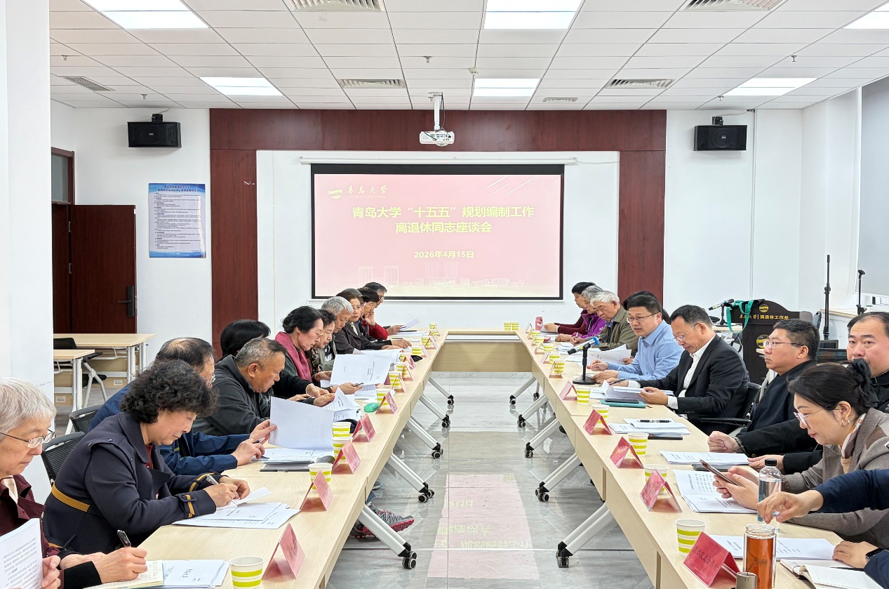 为广泛凝聚智慧、汇聚发展共识,高质量推进学校“十五五”规划编制工作,4月15日上午,青岛大学在离退休工作处党建活动室召开“十五五”规划编制离退休老同志座谈会。校党委常委、副校长刘恩贤出席会议并讲话,发展规划处处长马林刚主持会议,离退休老同志代表、相关职能部门负责人参加座谈。